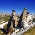 Camel Rock is a natural rock formation located in Cappadocia, Turkey. It is also known as Peri Bacalari or Fairy Chimneys in Turkish. The rock formation resembles a camel lying down, which is how it got its name. The rock is estimated to be around 60 million years old, and it was formed through volcanic eruptions, erosion, and weathering.
