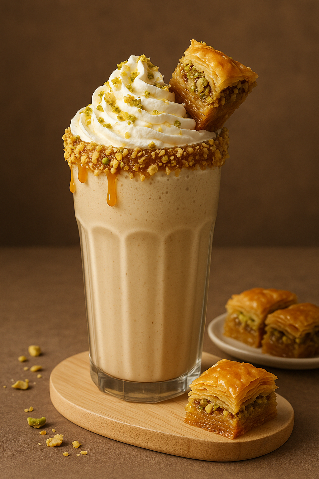 Because “baklava milkshake” sounds like a chaotic idea someone says as a joke at 3 a.m. Like, “What if we just blend the baklava?” But this is not a joke drink. This is extremely serious fun.